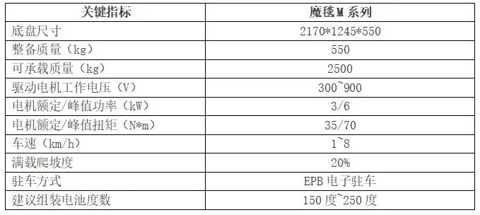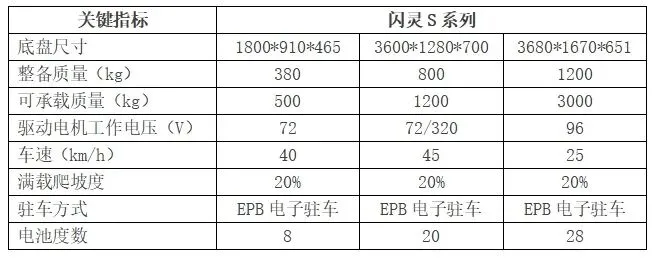 公司现已推出闪灵S系列、魔毯M系列、力牧L系列、战翼W系列四个系列多款线控底盘,主要应用于移动充电车(载重范围1200 kg~2500 kg)、无人配送物流车(载重范围500 kg~3000 kg)、厂区物流转运车(载重范围3000kg~5000kg),且已大批量交付及投入长期运营中。