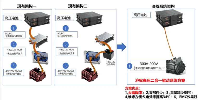 济驭科技的移动充电线控底盘方案使用高压一体化电机电控,针对各主机厂不同的移动充电车电池电压不统一,电池容量不统一导致底盘品种多的问题,从根本上解决目前行业低压方案底盘使用过程中馈电问题,爬坡能力不足问题,适配自动驾驶技术不足问题,出口EMC认证无法通过问题,底盘零部件多带来的维修困难问题等。