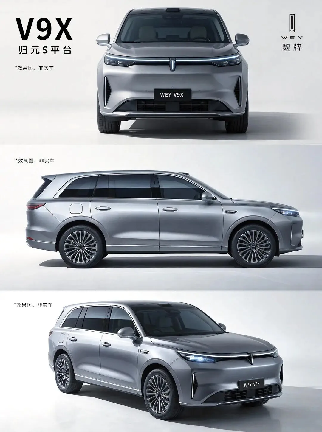 魏牌V9X正式官宣 ,长城的9系旗舰SUV挺帅的魏牌全新旗舰六座SUV定名V9X,是长城汽车发布的全新归元S平台首款车型。