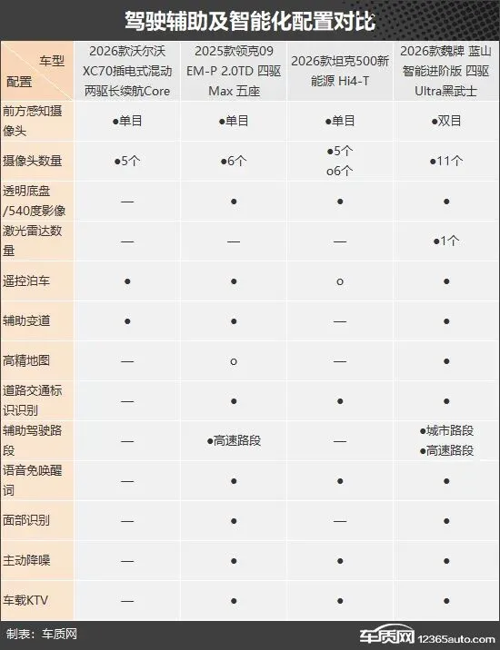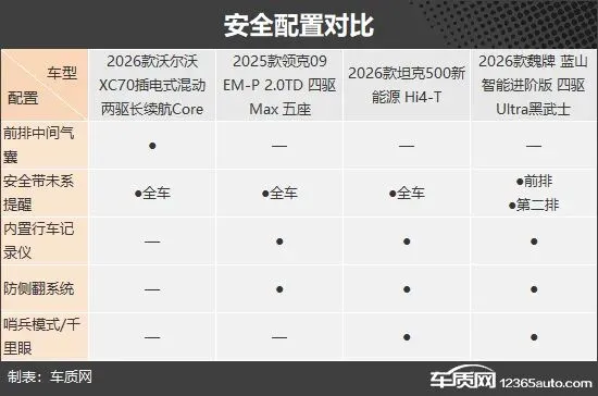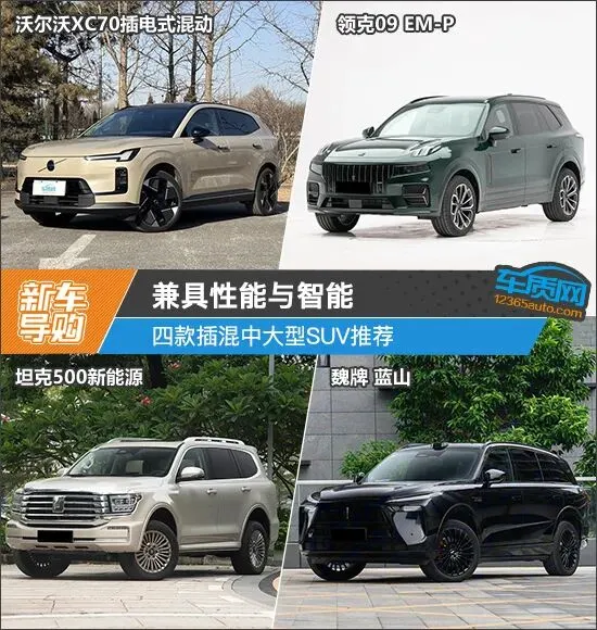 此次推荐的车型是2026款沃尔沃XC70插电式混动(以下简称:沃尔沃XC70)、2025款领克09 EM-P、2026款坦克500新能源以及2026款魏牌 蓝山。其中,沃尔沃XC70目前终端优惠力度不小,实际入手价会在30万元左右;领克09 EM-P当前同时在售2023款、2024款和2025款车型,不过遵循“买新不买旧”的原则,2025款显然是更值得优先考虑的版本(由于图片数量有限,因此部分车型的图片并非对应的具体款型)。