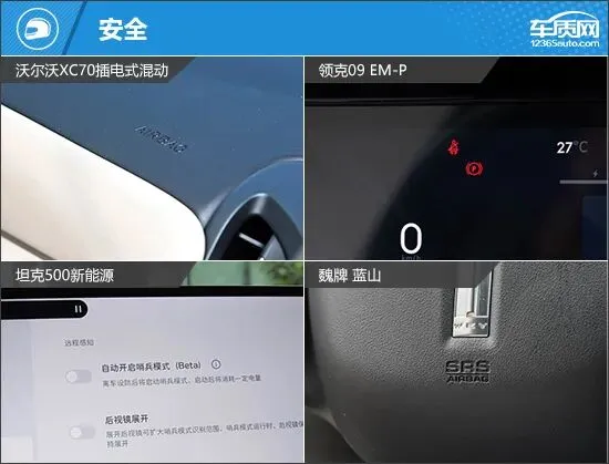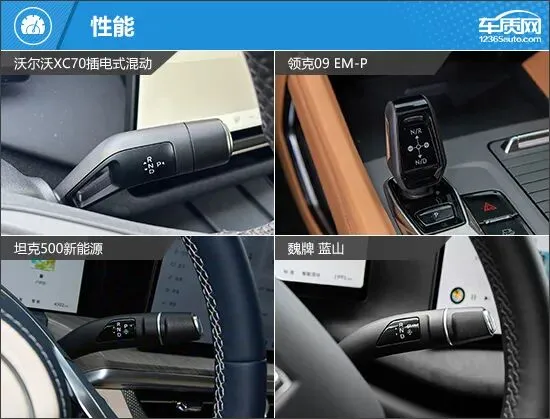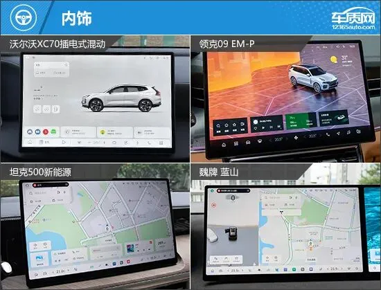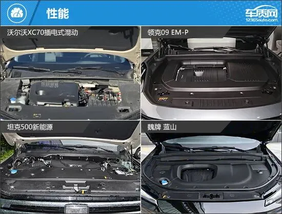 动力方面,这四款车型的动力组合各有侧重。领克09 EM-P和坦克500新能源均搭载2.0T发动机,沃尔沃XC70和魏牌 蓝山则采用1.5T发动机。其中,领克09 EM-P和魏牌 蓝山配备双电机,其余两款车型为单电机。