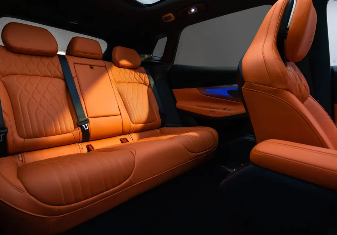 车辆的座椅功能配置区分标配车型与其余车型,除标配车型外,其余车型的前后排座椅均配备加热、通风、按摩功能,前排座椅设置腿托调节功能,后排座椅支持靠背调节,后排腿部空间可满足日常乘坐需求,座椅的功能配置与调节设计,适配不同的乘坐需求,后排的空间表现与座椅调节功能,让车辆能够适配家用场景的使用需求,座椅功能的分版本搭载也形成了车型的配置差异。