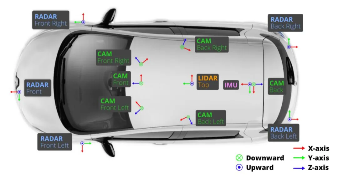 这张图展示了多传感器融合的复杂性——不同传感器各有分工,互为冗余。激光雷达提供厘米级精度3D点云,毫米波雷达穿透雨雾,摄像头补充语义信息。这不是简单的叠加,而是一套精密的协同系统。从这张布局图可以看出,一辆自动驾驶汽车需要配备多少传感器:前后左右多个雷达、遍布车身的摄像头、车顶的激光雷达、惯性测量单元……每增加一个传感器,就意味着成本的增加和系统复杂度的提升。