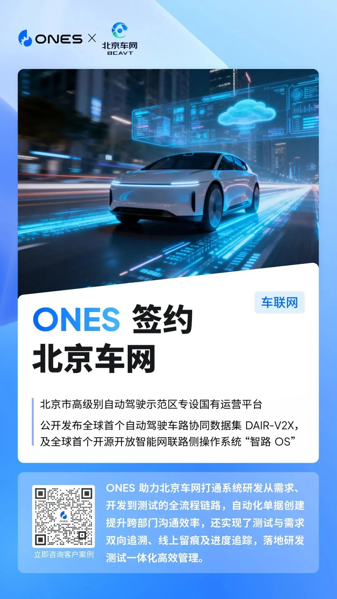 ONES 签约北京市高级别自动驾驶示范区专设国有运营平台——北京车网。