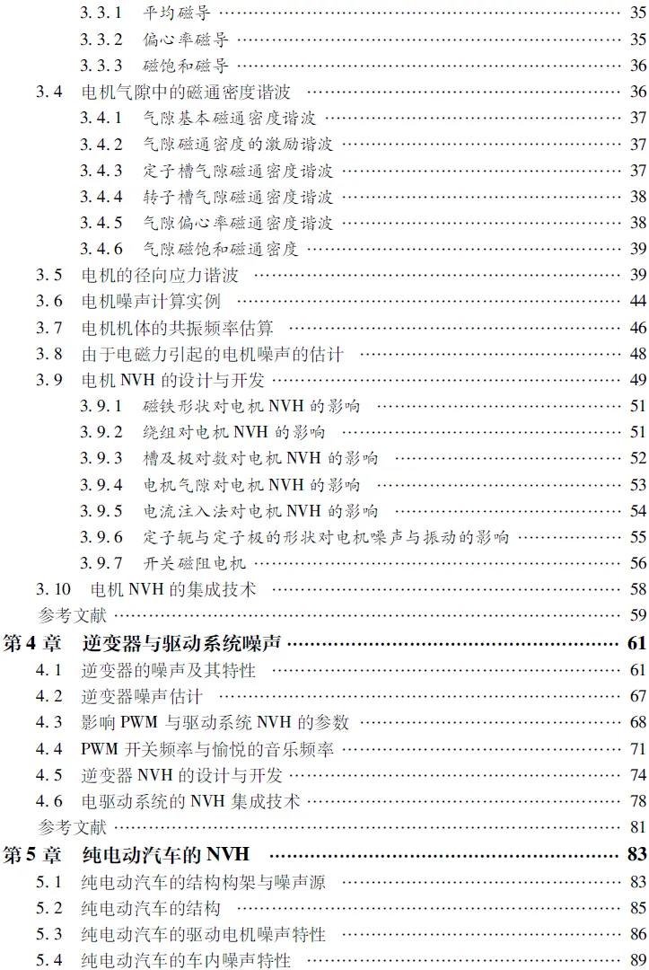 书中详细解释了如何通过电机极槽配合的优化、转子斜极设计以及定子结构的加强来抑制电磁噪声。更重要的是,作者提出了“系统集成”的思路:电机的NVH性能不能孤立优化,必须与减速器、悬置系统乃至整车结构协同考虑。
