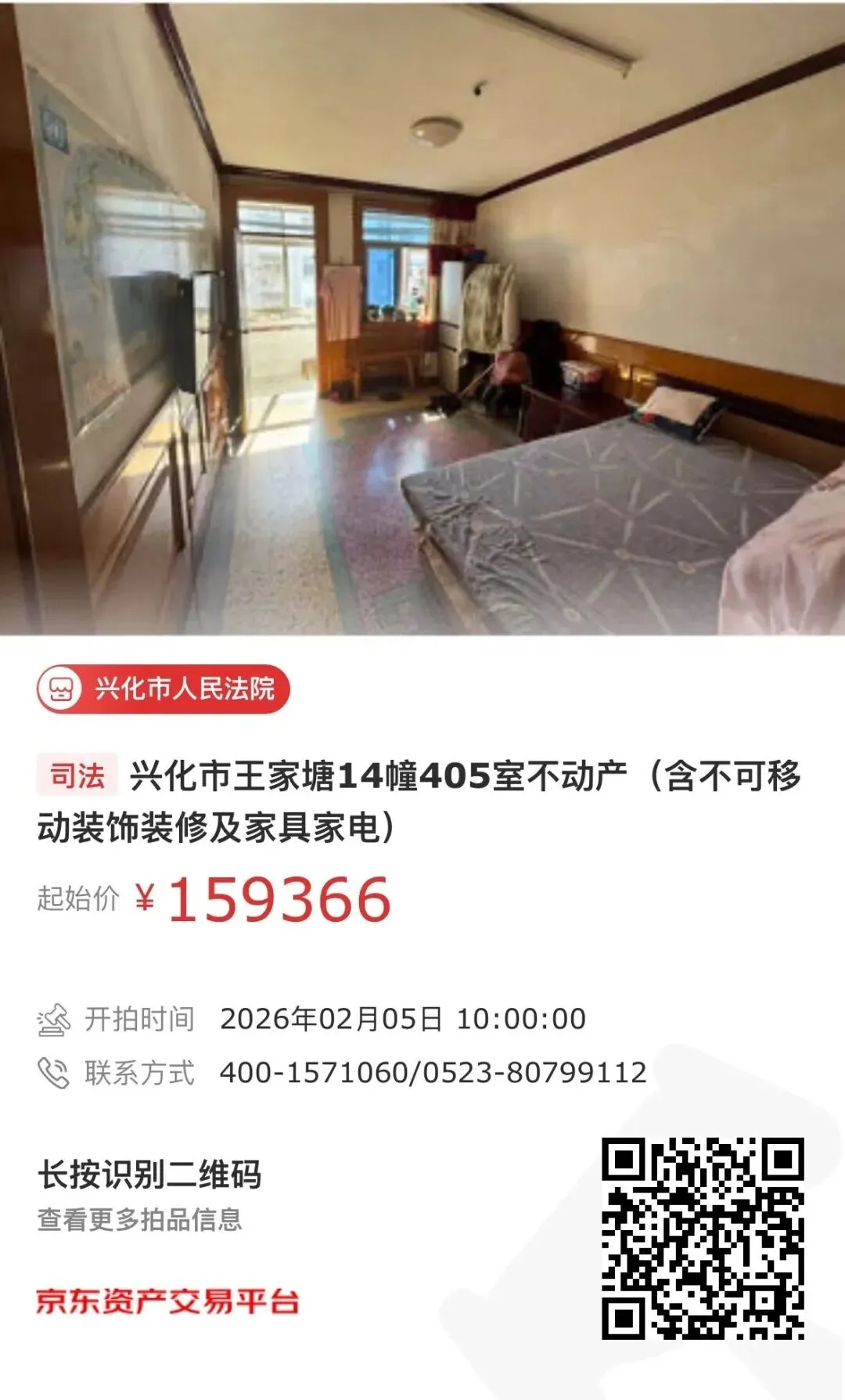 【第二次拍卖】兴化市王家塘14幢405室不动产(含不可移动装饰装修及家具家电)