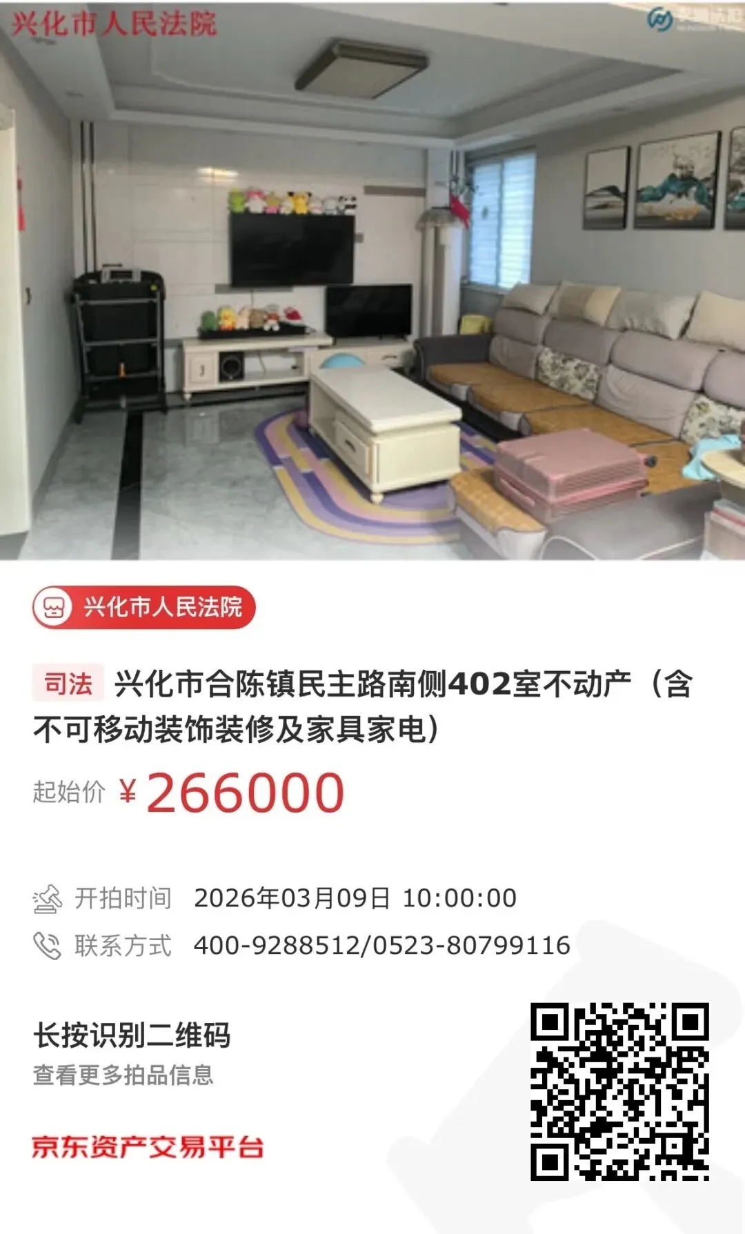 【第一次拍卖】兴化市合陈镇民主路南侧402室不动产(含不可移动装饰装修及家具家电)