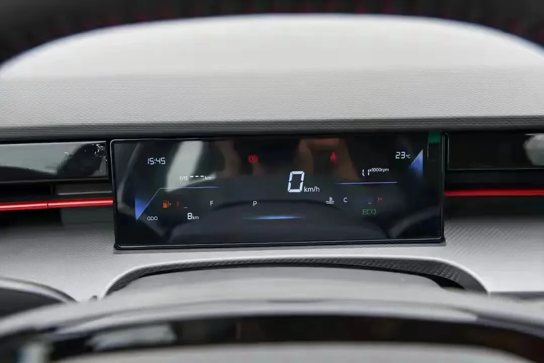 前脸的数字化无边界格栅搭配流光之翼分体式LED大灯,夜晚点亮后气场全开,颇有“灯厂”风范,灯光效果直接拉满;R18跃动轮毂搭配黑色轮辋,比同价位那些“买菜车”精致太多,运动感十足。值得一提的是,新车去掉了荧光绿装饰,多了份成熟稳重,却依旧科技感拉满。