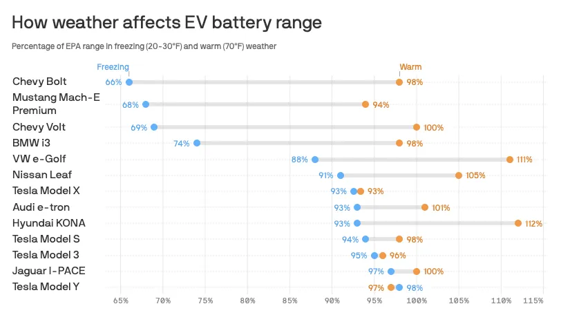Reality check: Most electric vehicles experience some loss of driving range in cold weather.