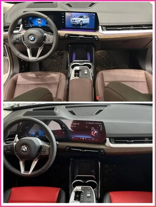 内饰.这块儿。跟老款X1.比简直是脱胎换骨,10.25+10..7英寸的双联屏科.技感拉满,iDrive 9.0系统反应速度很快,界面UI.设计也符合国人审美。中控台用.的Sensatec合成皮。手感.?还行.比硬塑料.强多了。
