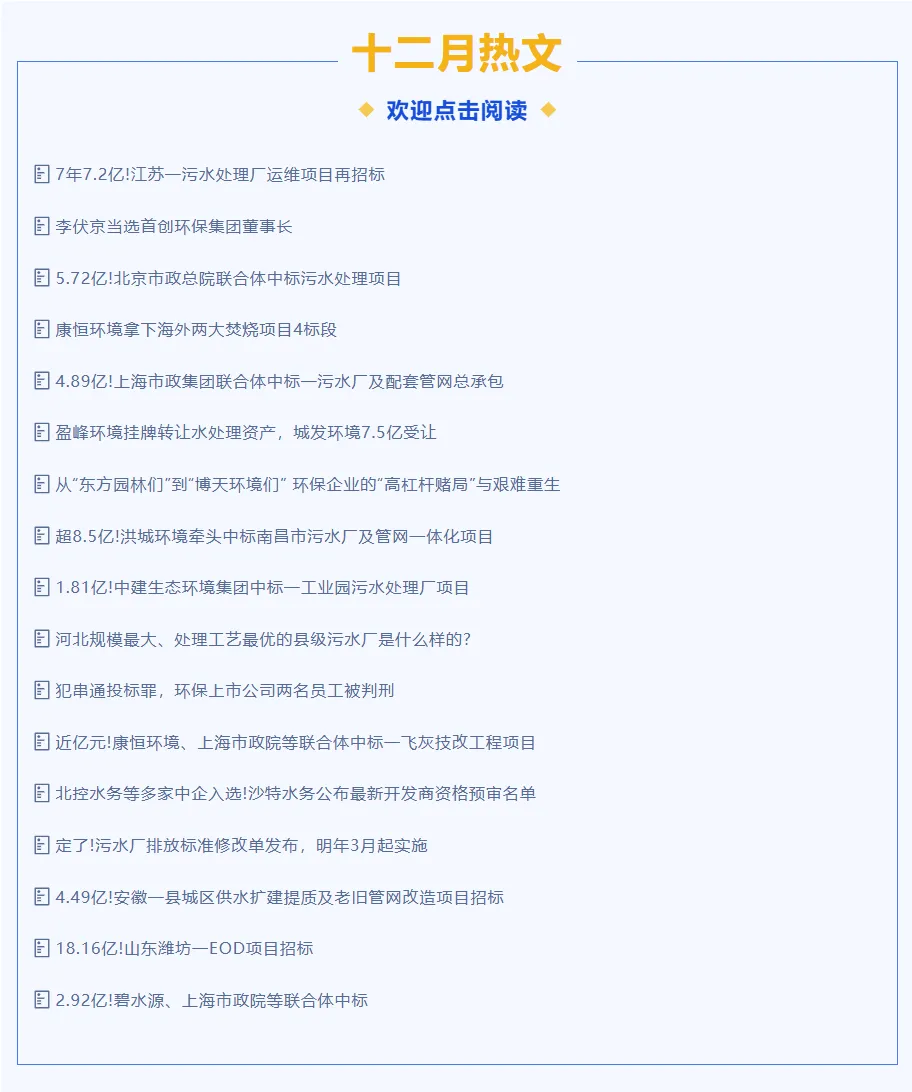 “E20水网固废网”公号版权声明:凡注明来源“中国水网、中国固废网”的所有内容,包括但不限于文字、图表、音频视频,版权均属E20环境平台所有,如若转载,请联系授权。违者视为侵权,本公号将保留对侵权者追究版权责任的权利。申请授权可联系汪女士微信:Zp234268。