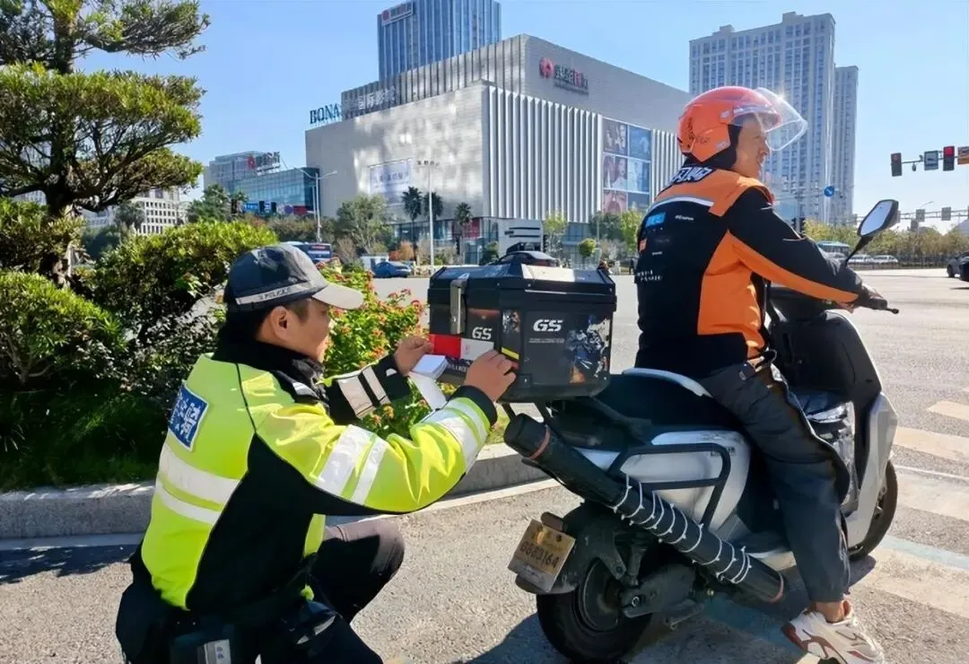 第二点是规范佩戴头盔,头盔从不是挂在车把上的摆设,各地交警查头盔已细化到系紧搭扣,带而不戴、戴而不扣的行为,在事故发生时和未佩戴头盔毫无区别,看似的小侥幸,实则是拿生命冒险。