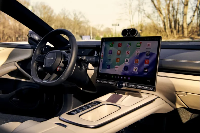 The massive 16.1-inch display runs Xiaomi's HyperOS but also Apple CarPlay.
