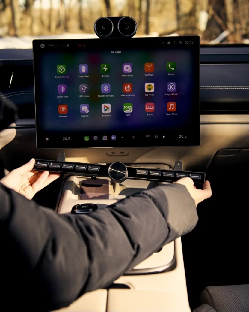 Remember whenI chose an EV a few years back? Remember how loudly I complained about Tesla and others ditching buttons and knobs for all-touchscreen everything? With Xiaomi, you don’t have to choose. It sells a slim control bar that magnetically snaps to the bottom of the screen, giving you honest-to-goodness physical buttons for music and climate control. Miracles happen.