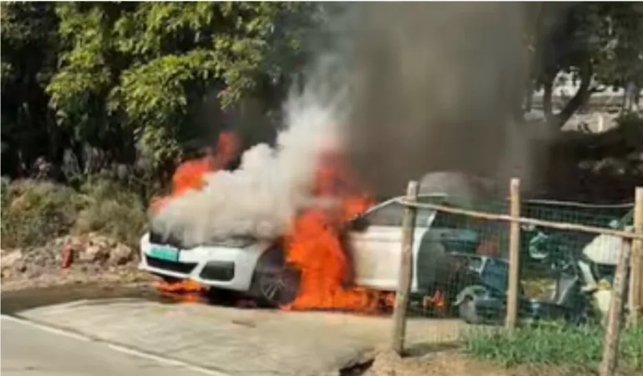 如果起火点果真如相关机构认定的在发动机舱右侧,起火原因认定是发动机舱右侧电气线路故障。那么铝制的发动机舱盖会最早被烧化烧穿,火焰最开始就会从发动机舱冒出,而不是如视频截图所示的只有浓烟从发动机舱盖边沿缝隙冒出。