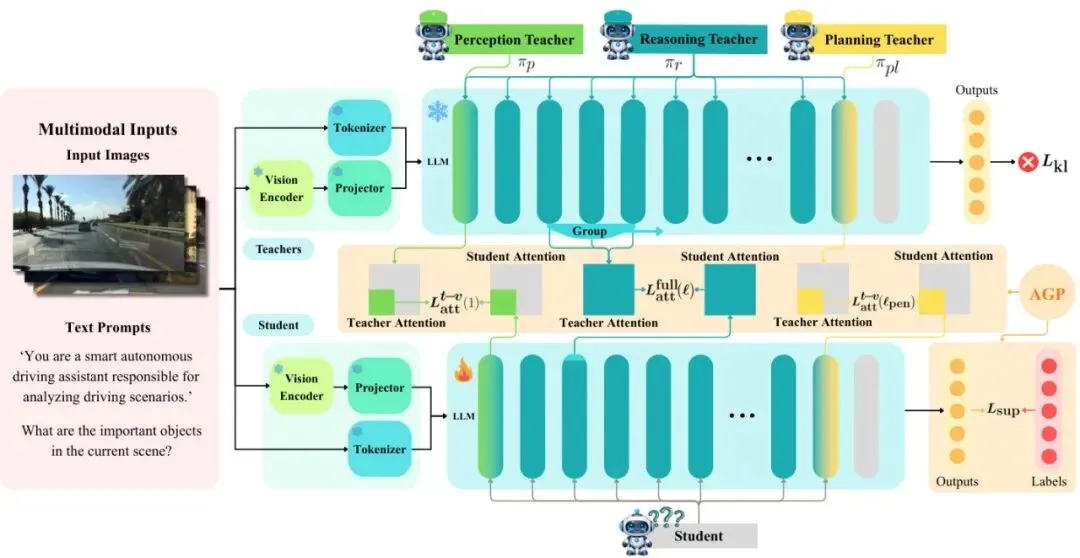 拆解之后,问题就变成了:如何把大模型在“感知”、“推理”、“规划”这三方面的“内功心法”,精准地灌顶给小学霸?“感知-推理-规划”三步走,蒸馏如何精准传递驾驶能力?