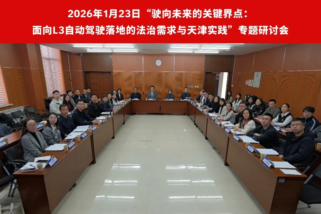 为回应高级别自动驾驶规模化落地对法律制度供给提出的新要求,推动技术创新与法治建设协同发展,“驶向未来的关键界点:面向高级别自动驾驶落地的法治需求与天津实践”专题研讨会于2026年1月23日在天津举行。会议由天津大学法学院、北京科技大学文法学院、北京市物权法学研究会、天津市法学会科技法学分会共同主办,由北京科技大学文法学院中国式现代化实践法治研究中心、北京市盛廷律师事务所承办。本次会议由盛廷学术基金支持。与会专家在天津大学法学院围绕L3级及以上自动驾驶试点落地中的立法、监管、责任与数据治理等问题展开深入研讨。