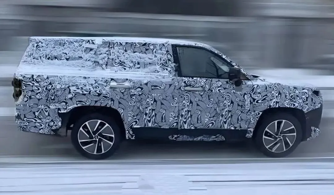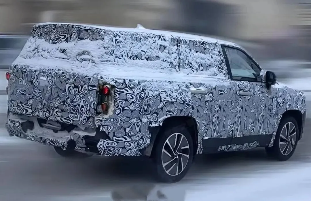 从曝光的谍照中能捕捉到不少关键细节,新车侧面车身修长感拉满,最具辨识度的当属车窗设计——第三排车窗的长度竟超过了第二排,这样的比例特征并非偶然。
