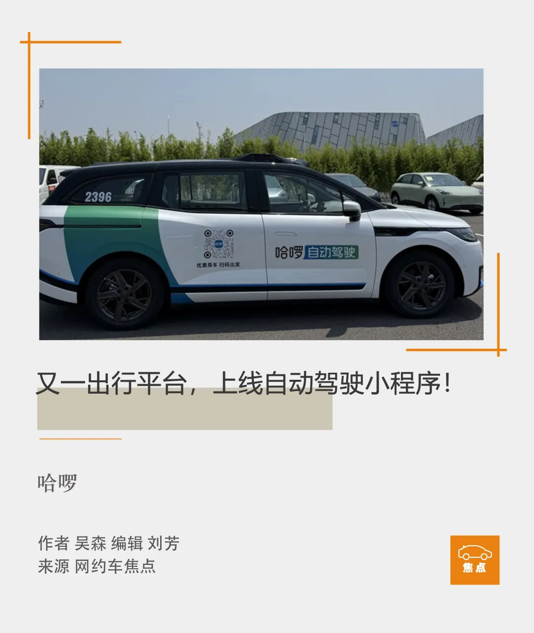 1月31日,《网约车焦点》发现,哈啰自动驾驶小程序已经上线,注册主体为广州造父智能科技有限公司。