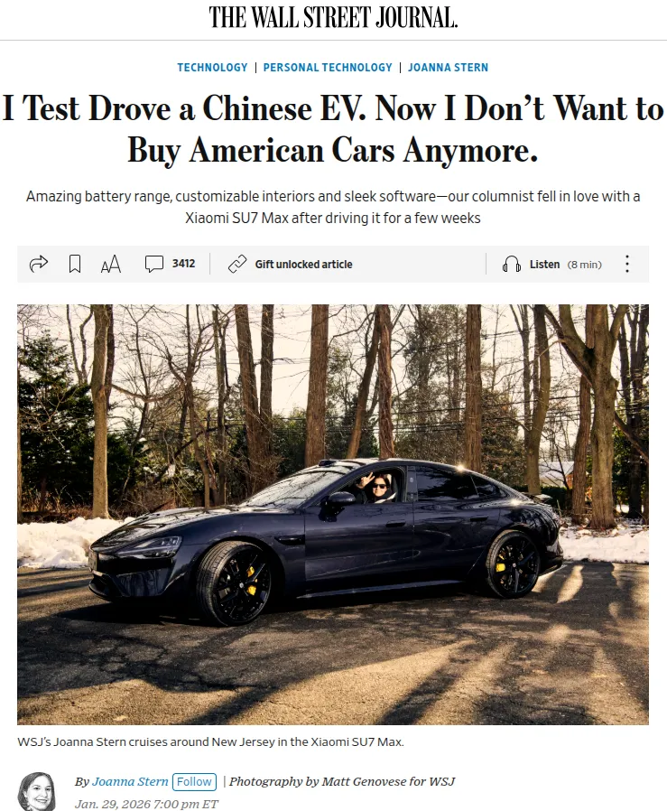 参考资料:I Test Drove a Chinese EV. Now I Don’t Want to Buy American Cars Anymore. By Joanna Stern