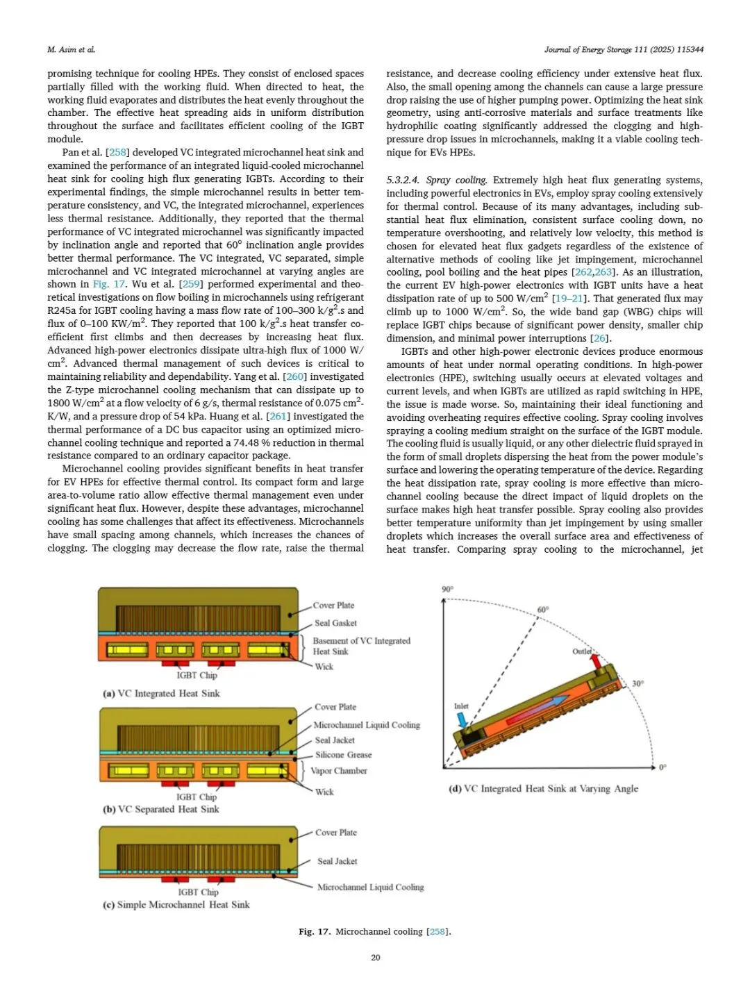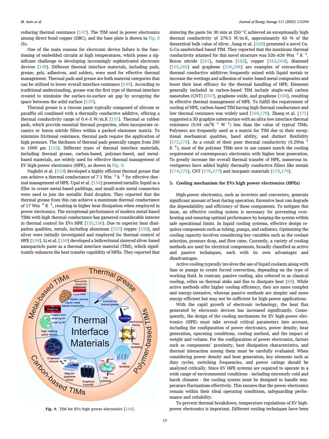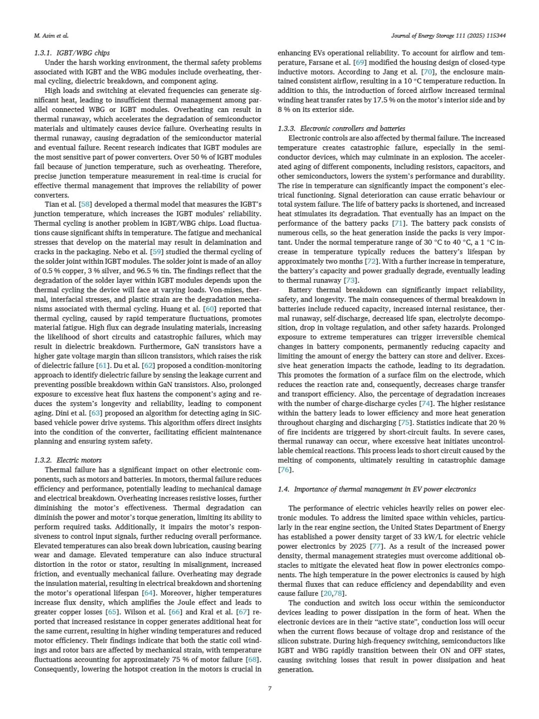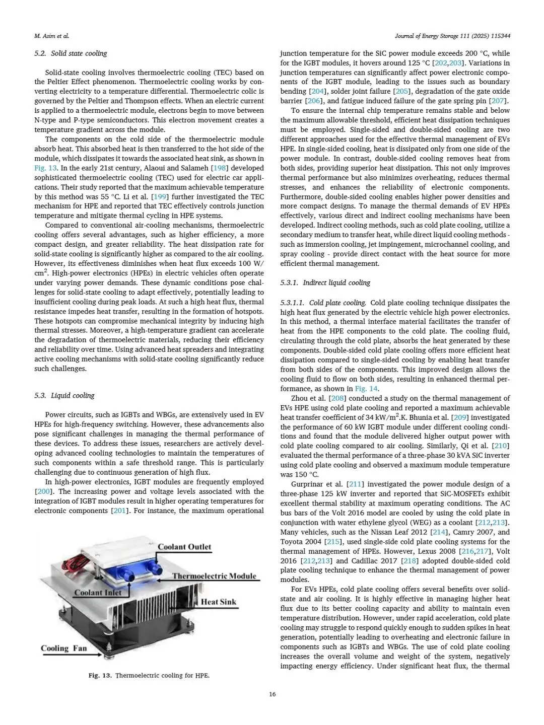 Asim, M., Baig, T., Siddiqui, F. R., Khan, S., Khan, S. A., Babar, H., ... & Abidi, I. H. (2025). Advancements in thermal management solutions for electric vehicle high-power electronics: Innovations, cooling methods, and future perspectives. Journal of Energy Storage, 111, 115344.