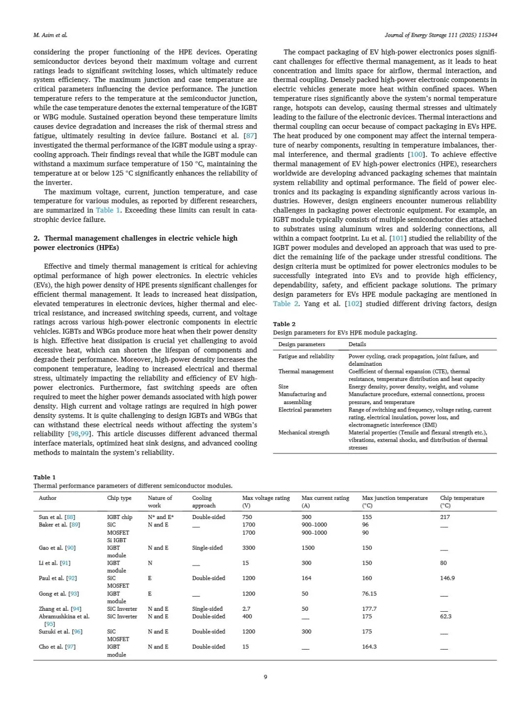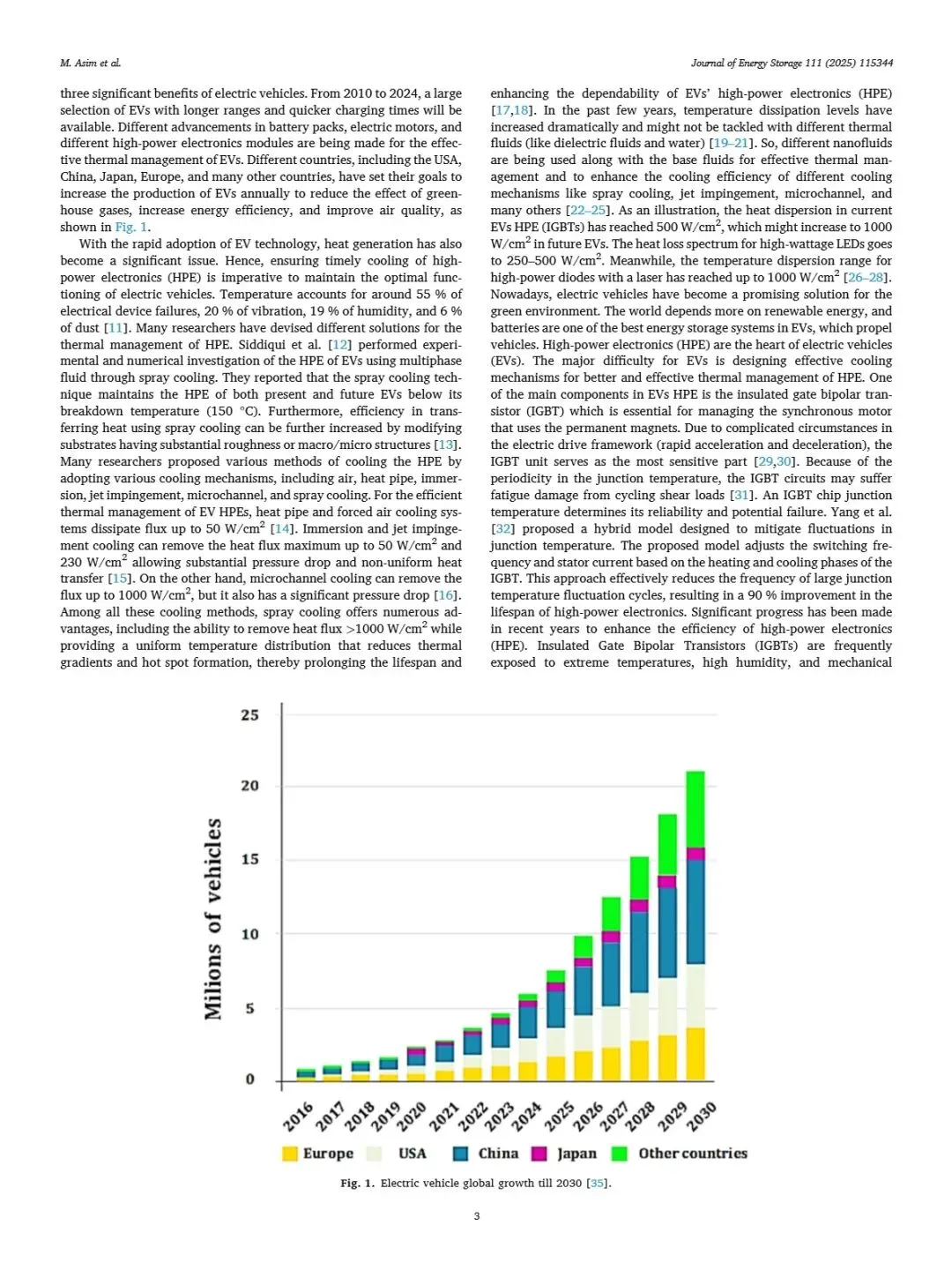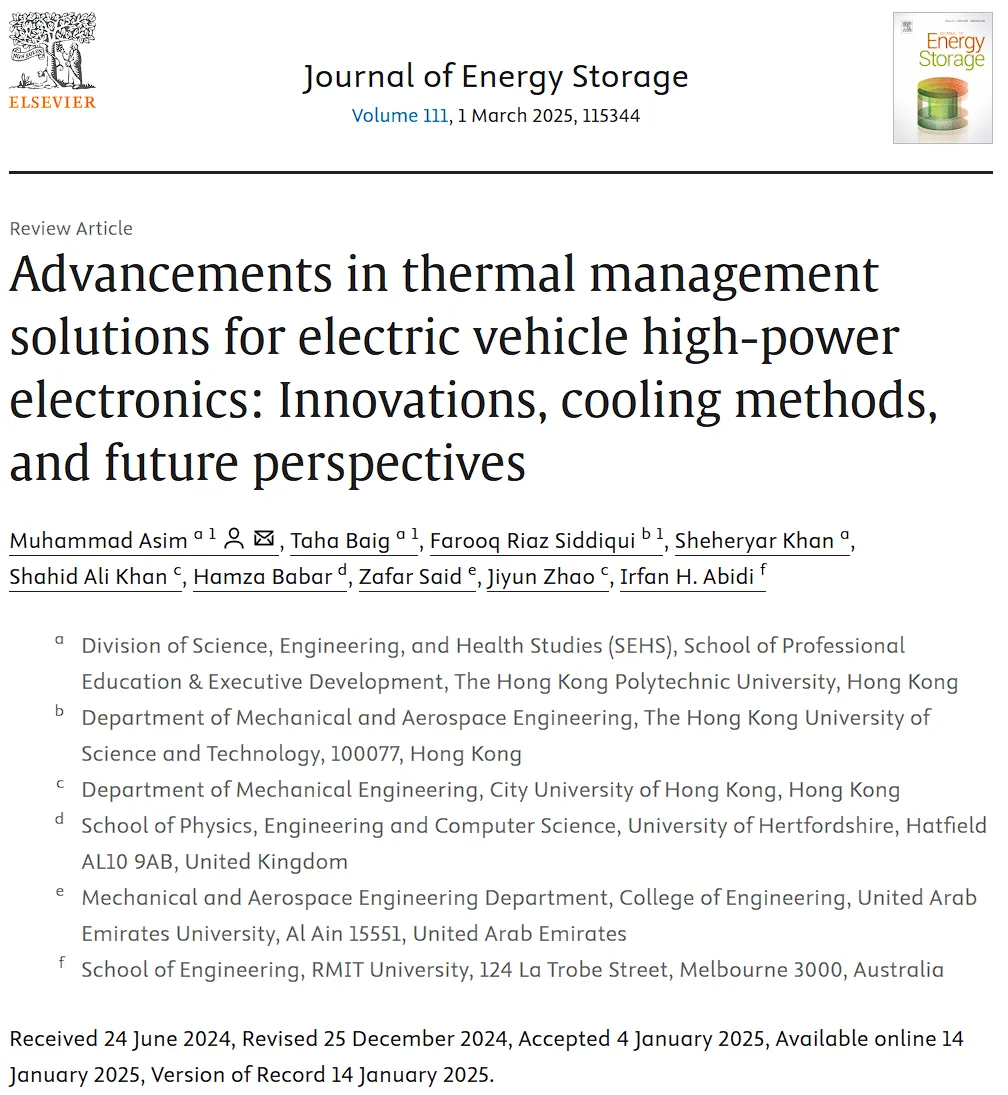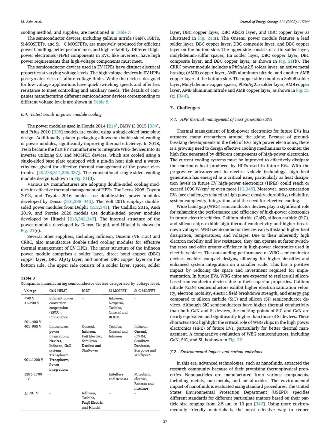 Asim, M., Baig, T., Siddiqui, F. R., Khan, S., Khan, S. A., Babar, H., ... & Abidi, I. H. (2025). Advancements in thermal management solutions for electric vehicle high-power electronics: Innovations, cooling methods, and future perspectives. Journal of Energy Storage, 111, 115344.