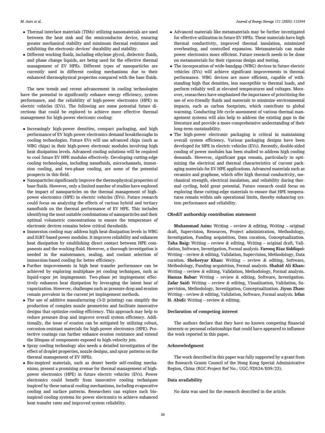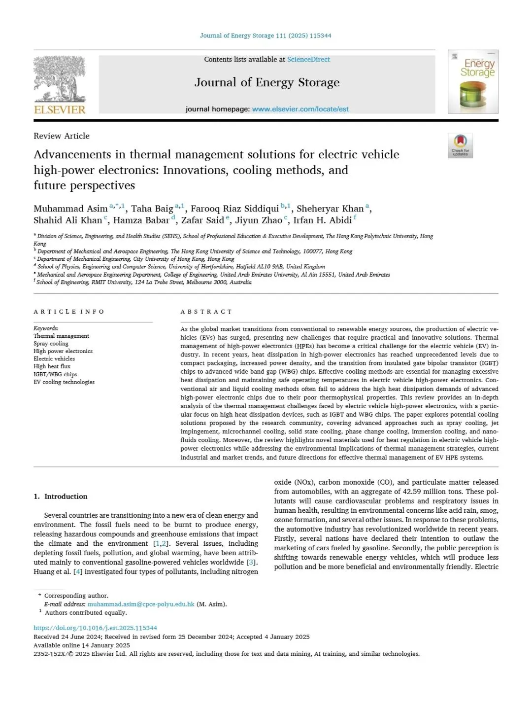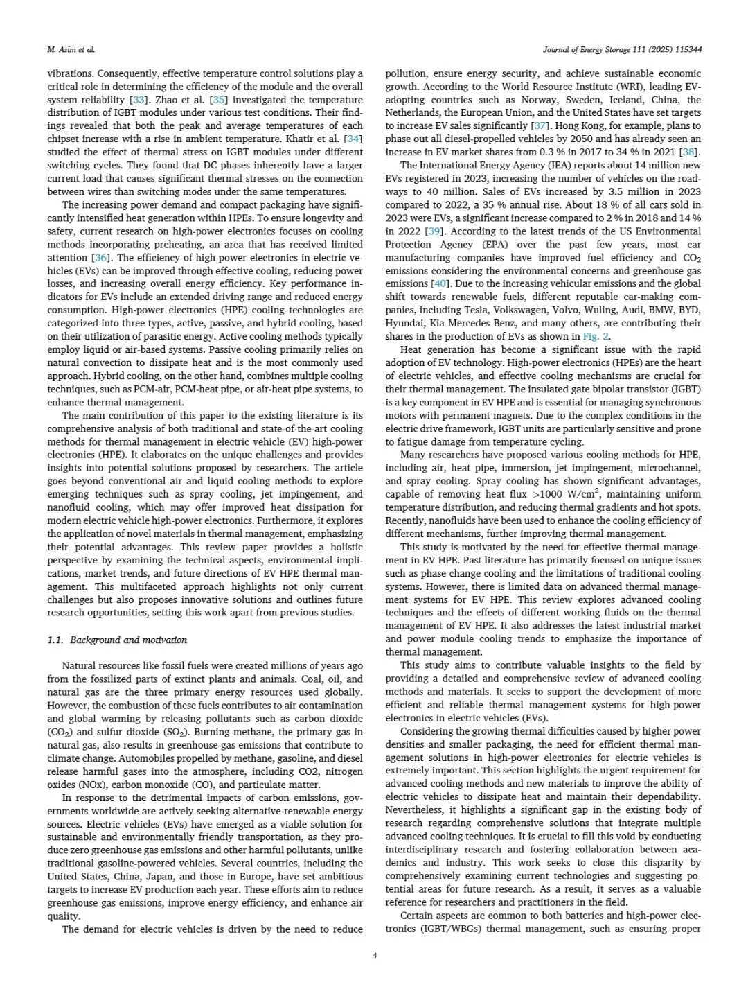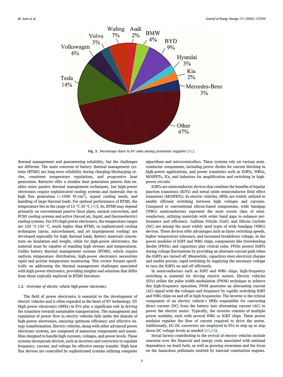 Asim, M., Baig, T., Siddiqui, F. R., Khan, S., Khan, S. A., Babar, H., ... & Abidi, I. H. (2025). Advancements in thermal management solutions for electric vehicle high-power electronics: Innovations, cooling methods, and future perspectives. Journal of Energy Storage, 111, 115344.