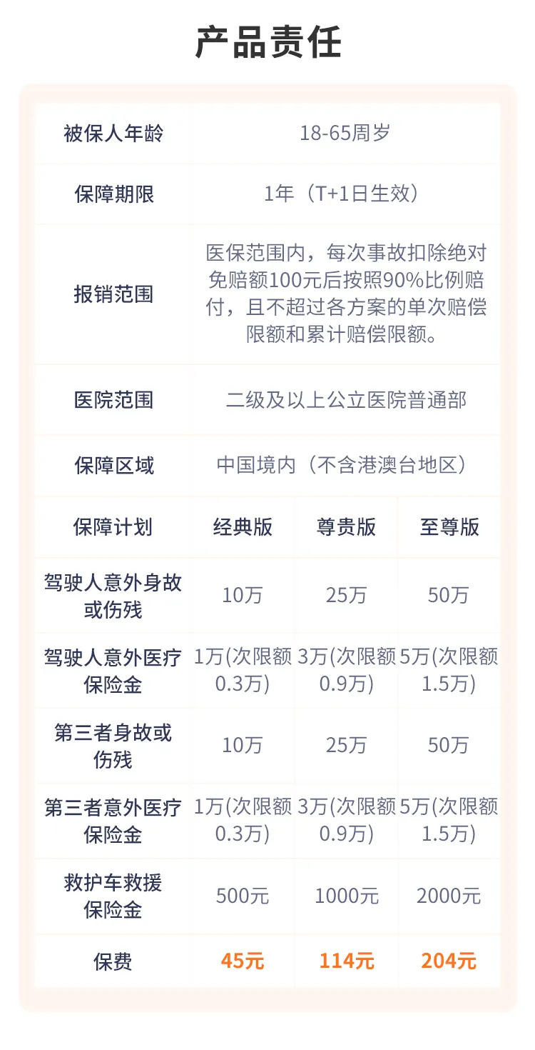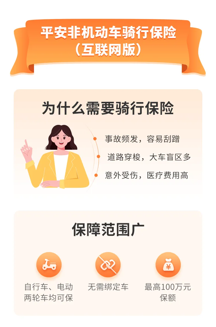 >平安·非机动车骑行保险·自行车、电动车均可保·第三者责任·18~65岁保10-50万一年·3档可选