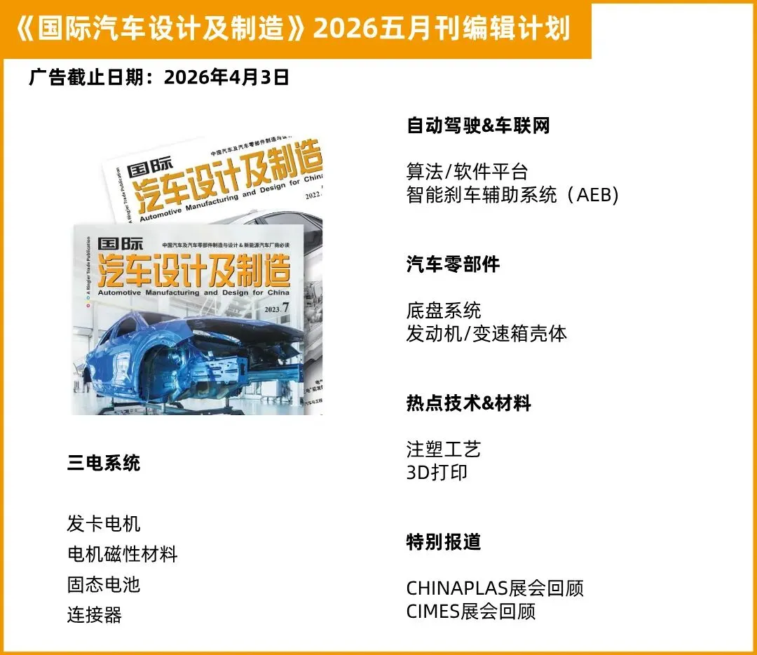 1月28日,工业和信息化部发布强制性国家标准《轻型汽车自动紧急制动系统技术要求及试验方法》。该标准为我国汽车驾驶辅助系统领域首个强制性国家标准,规定了轻型汽车自动紧急制动系统(AEBS)的功能要求、性能指标及测试方法,明确系统在不同车速、目标类型和场景下的最低安全性能门槛,并对误触发控制、系统失效应对等提出具体技术规范。标准自发布之日起实施,适用于新申请型式批准的M1类车辆。