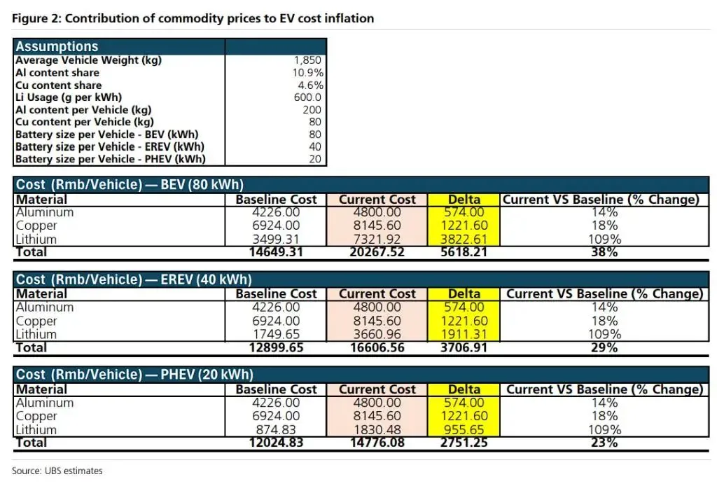 铝代铜技术突破将直接降低电动车的单车铜用量,帮助车企应对原材料成本上涨的压力。根据瑞银2026年1月的研报,一辆典型的中型智能电动车需要约80公斤铜,而过去三个月铜价上涨已导致单车成本增加约1200元。在锂、铝、DRAM等全线上涨的背景下,铝代铜成为降本增效的关键路径之一。