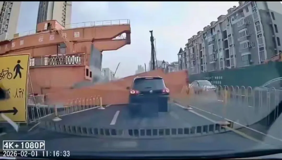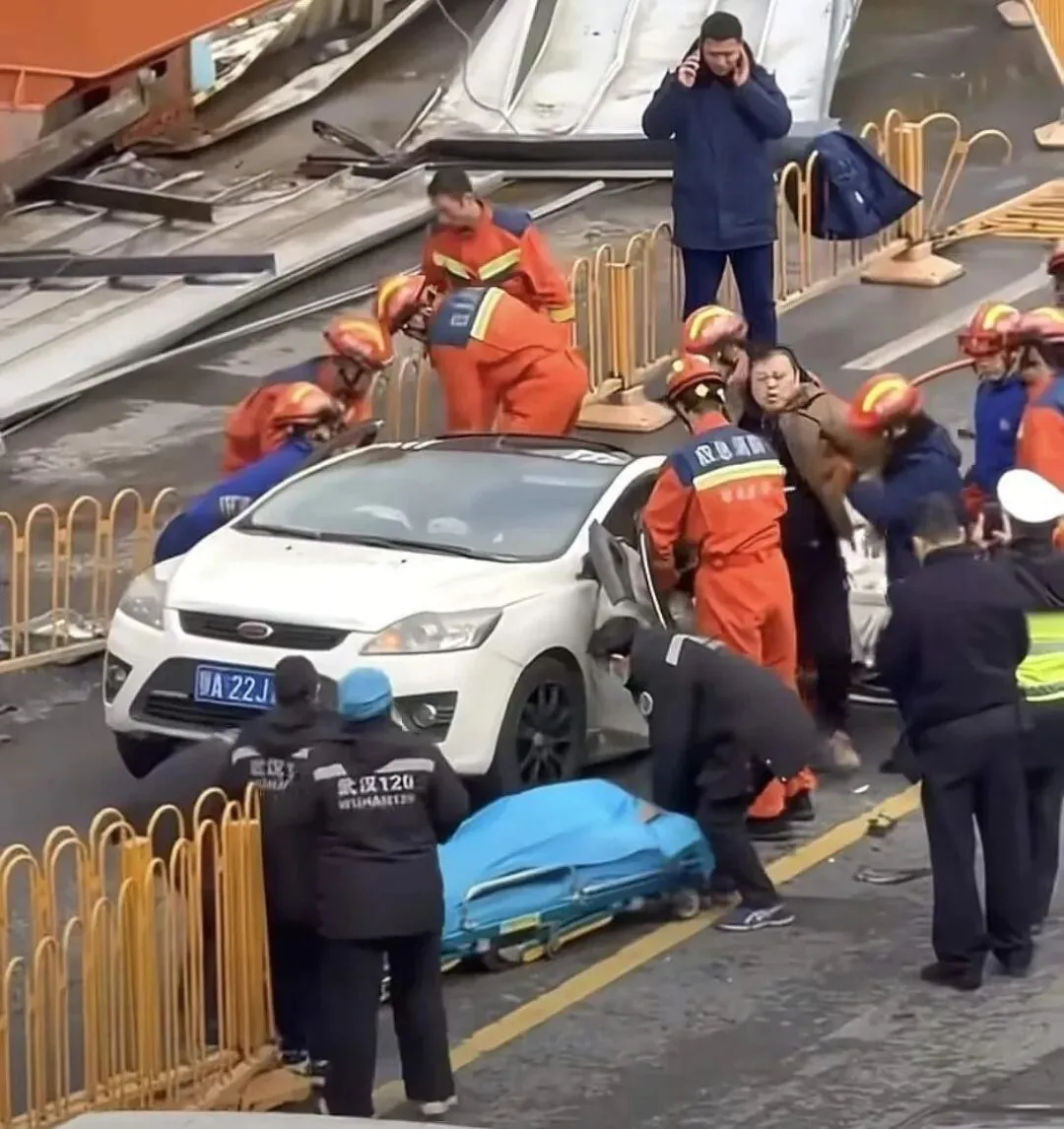 2月1日,湖北武汉后湖大道一处地铁施工地发生了龙门吊倒塌事故,造成了一辆白色小轿车后座被压扁,出现了人员伤亡。