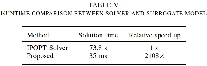 表 V 对比了传统优化求解器与本文代理模型的计算效率。由于交通–电力耦合模型具有高维、非凸等特点,传统求解方法在计算时间上难以满足在线应用需求。相比之下,本文提出的代理模型将求解时间缩短至毫秒级,实现了数量级上的加速。这种显著的计算优势,使其具备支持实时充电价格调度以及充电站聚合参与电网灵活调节的实际应用潜力。