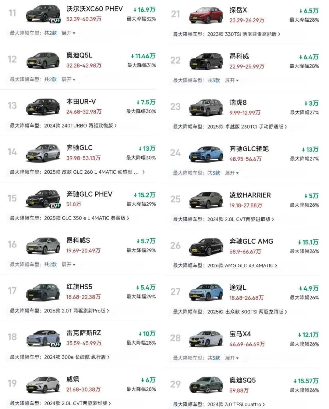 2026年了,中型SUV价格直接腰斩!豪华品牌降幅近50%,落地价比去年便宜一倍。为啥?新能源杀疯了,传统车扛不住了。