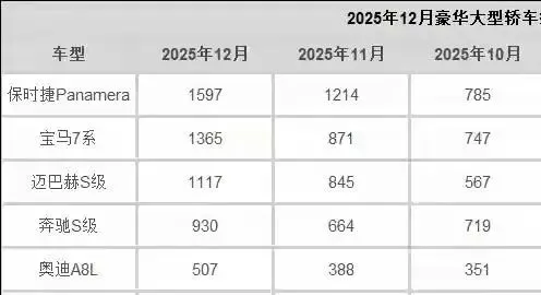 作为曾经豪华D级车市场的“龙头老大”,奔驰S级的光芒逐渐褪去,现在被保时捷帕拉梅拉,宝马7系给反超,25年12月份,它一共卖了930台,相比11月份,销量提升100多台左右。