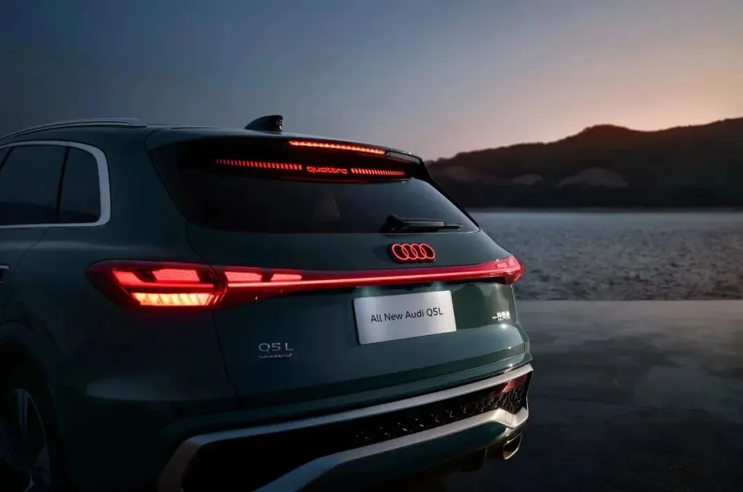 车身侧面线条更加凌厉,quattro blisters轮拱设计致敬经典,配合半隐藏式门把手和全新设计的轮毂,整体姿态更低趴、更运动。车尾贯穿式OLED尾灯组支持6-8种自定义光效,当检测到后方车辆或行人时会自动增强亮度,将安全与美学完美融合。整体来看,全新Q5在保留家族辨识度的同时,通过细节的精致化处理,成功塑造了更具攻击性和科技感的视觉形象。