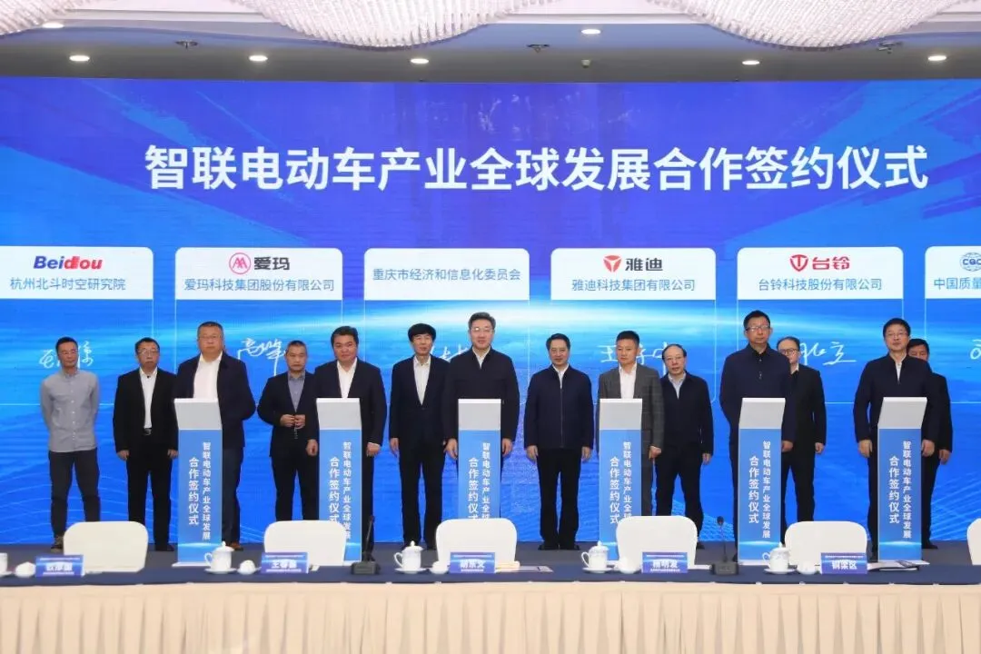 参加签约的中国质量认证中心主任刘江在发言中说,作为中国最大的消费工业品认证机构,建议电动车产业主动迎接能源革命、智联革命、数字革命挑战。以北斗智联为代表的自主信息技术发展,为电动车产业实数融合提供了有力支撑。以此次签约为契机,重庆市正抓紧制定《重庆市智联电动车产业发展行动计划》,将紧扣电动车产业智联化、全球化发展趋势,持续优化智联电动车产业生态,加速打造智联电动车全球产业基地。