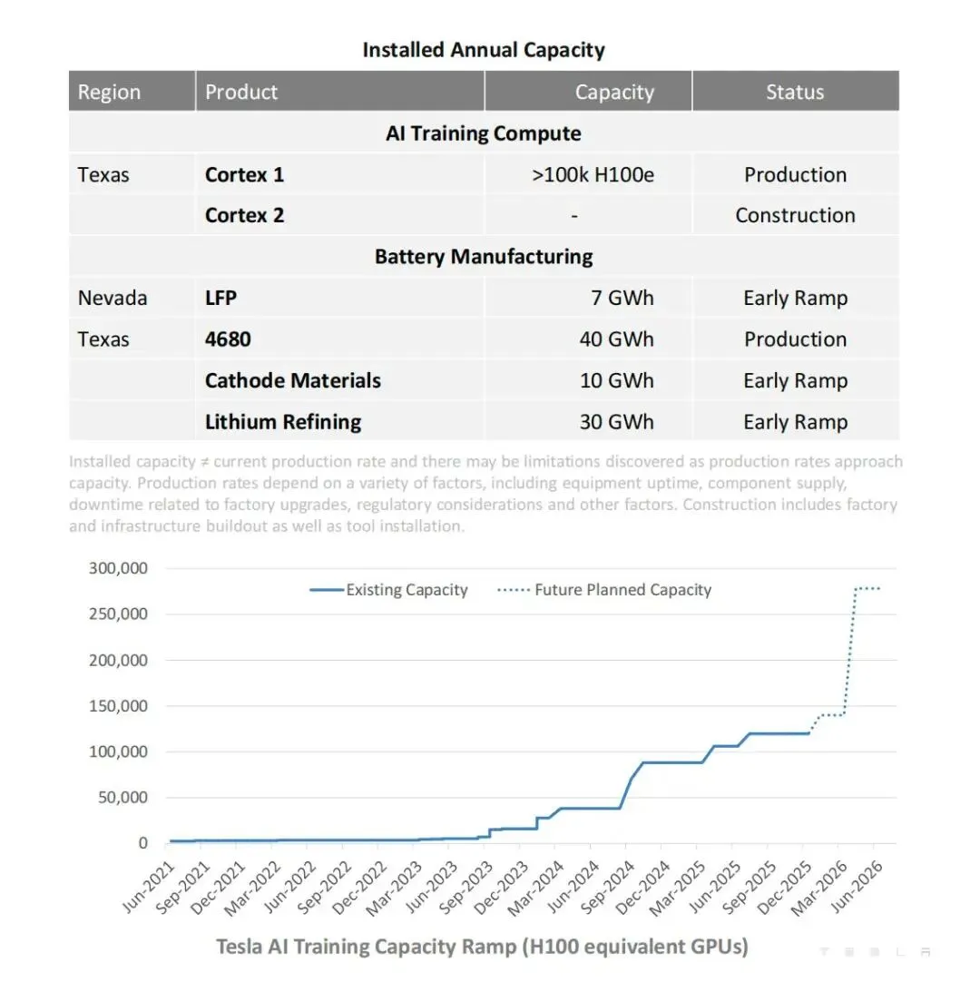 特斯拉正在得州超级工厂打造Cortex 2算力集群,进一步提升人工智能训练算力规模。2026年上半年,计划将得州超级工厂的本地算力规模提升超一倍(按H100等效算力计算)。现实世界模拟器持续强化AI训练,推动了智能辅助驾驶参数与性能提升。
