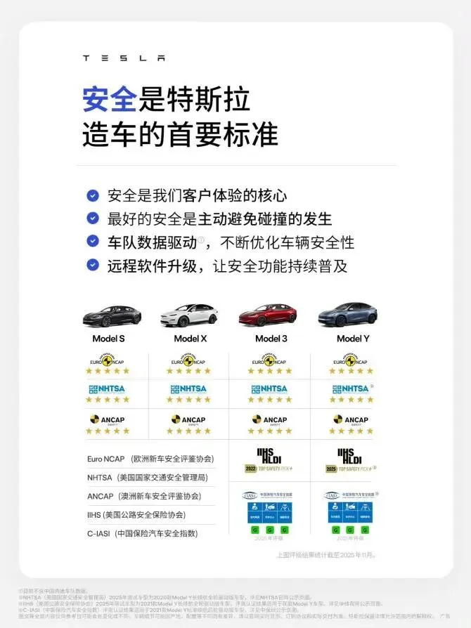 Model Y蝉联多国销冠:中国市场近一年SUV销量冠军、连续四年中高端车型销量第一;连续四年蝉联美国电动汽车销量冠军;欧洲年度最受欢迎电动车;日本2025年最畅销电动车;挪威年度乘用车销冠。特斯拉成为2025年中国最畅销的豪华车品牌,Model Y/3包揽近一年豪华车销量冠亚军。在2025年中国豪华车市场,特斯拉以超62.7万辆的销量成绩,超越奔驰宝马奥迪,稳居豪华车销量冠军。
