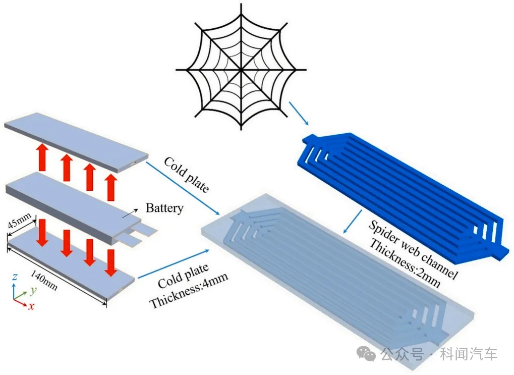 图4. BTMS中用于增强热分布的蜘蛛网通道结构。
