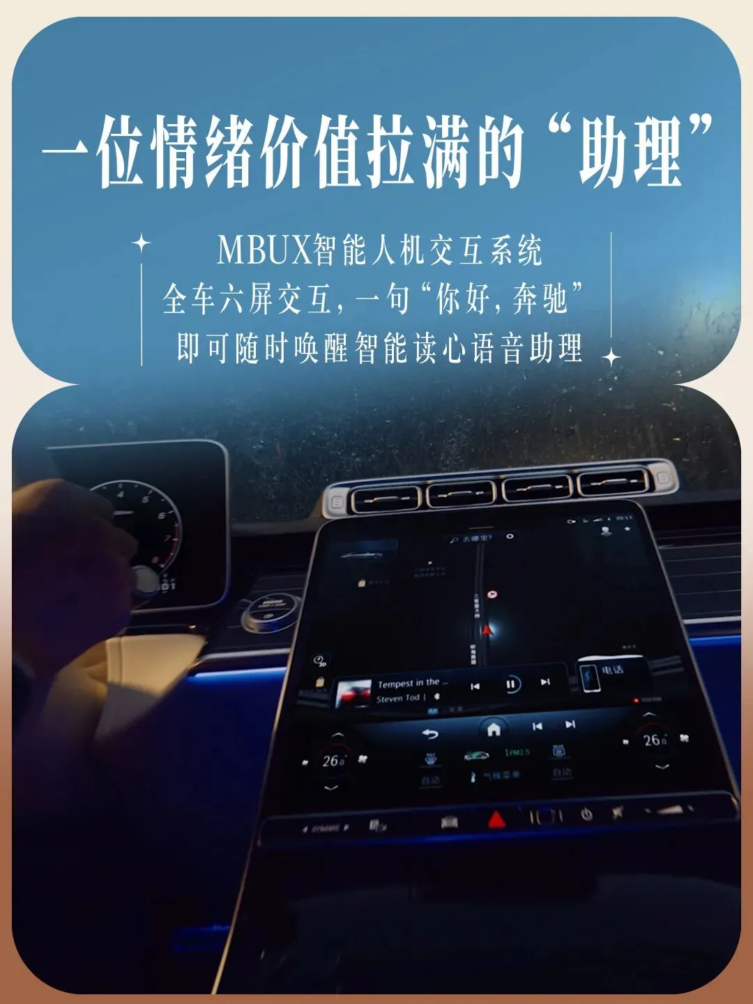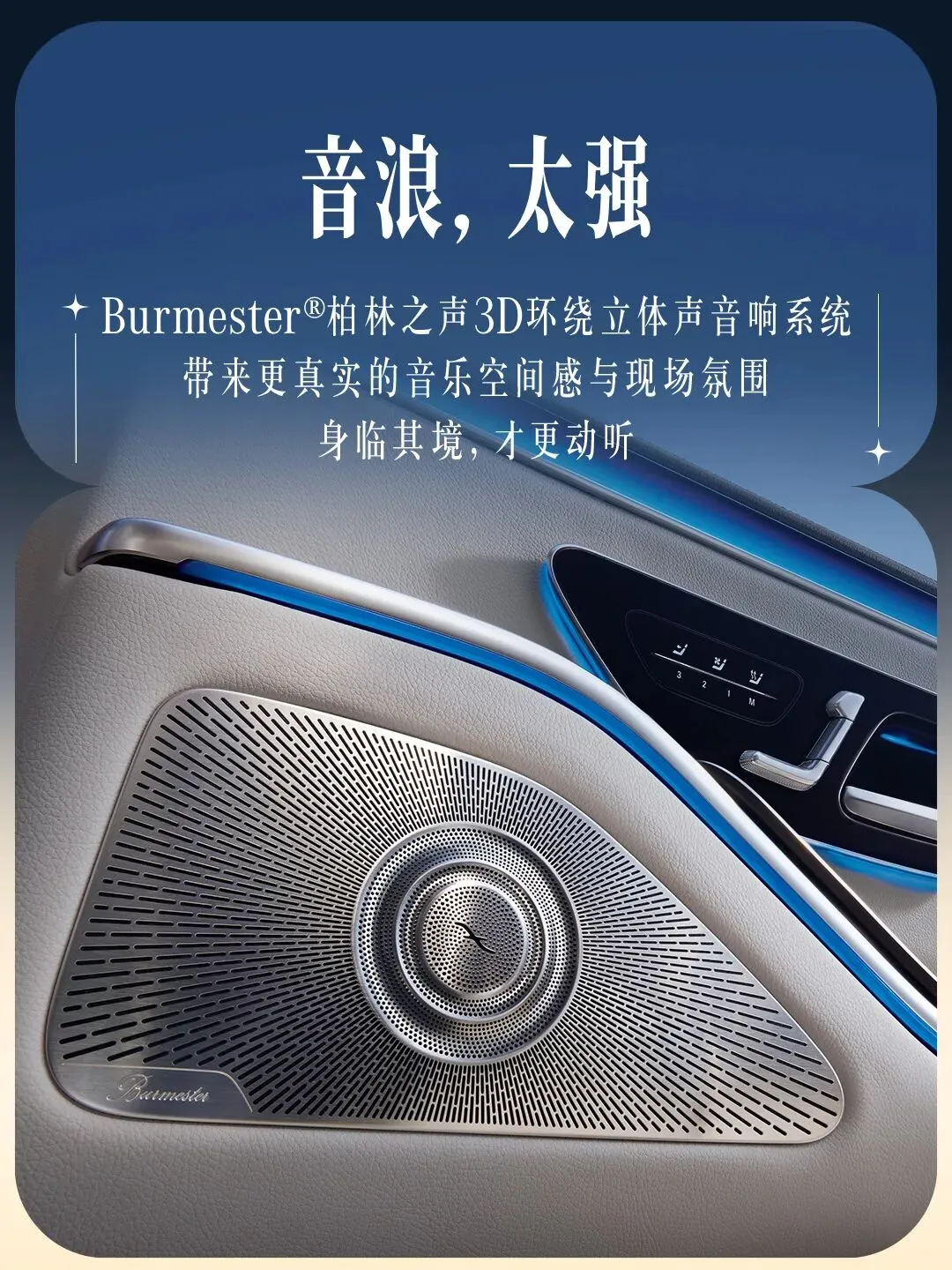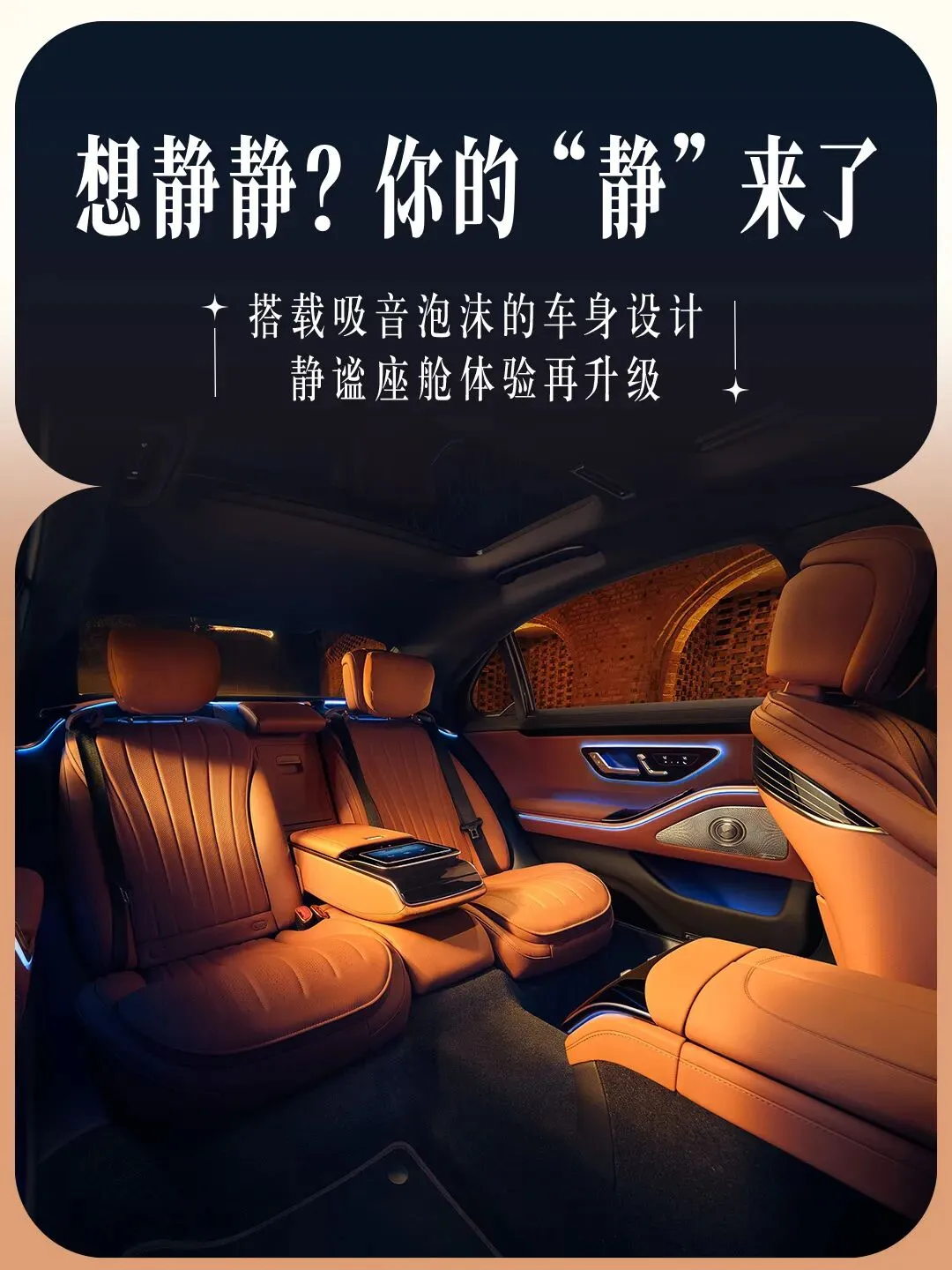 ✨不仅感受,而且享受搭载吸音泡沫的车身设计,与风阻系数低至0.22Cd的流线造型,为内部空间带来非凡静谧性。入座S级轿车,垂瀑式中央触控屏浑然天成,主动式环境氛围灯、Burmester®3D环绕立体声音响系统,让每一次旅程“声色动人”。