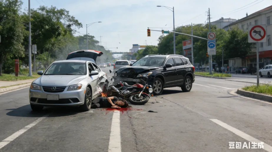 两轿车相撞甩尾,撞飞路过的摩托,骑车的孕妇重伤……