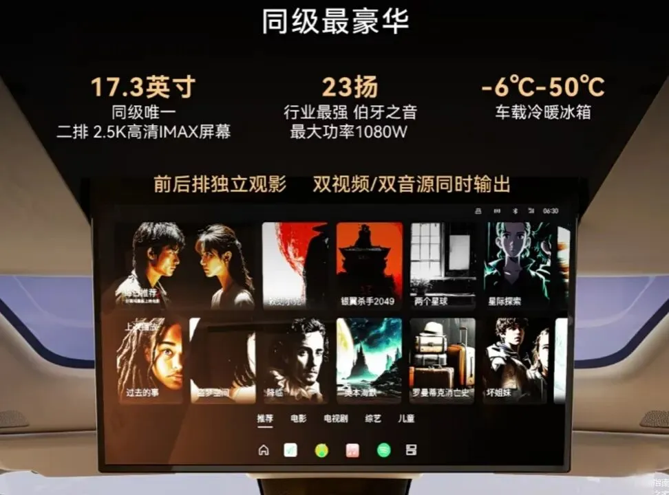 · 空间灵活性:内饰设计营造出豪华与科技氛围,高配车型配备贯穿中控台的IMAX三联屏