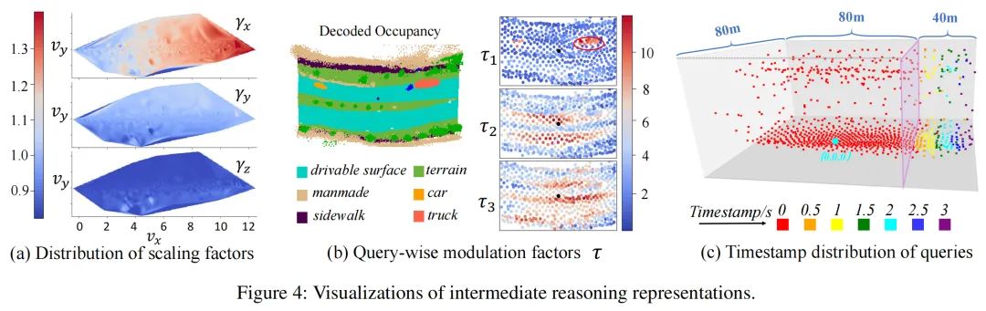 其中, 是初始查询坐标(可学习), 是历史轨迹点, 是调制后的查询坐标。这一设计使查询的空间分布能随车速动态调整——高速时查询向远处扩展,低速时聚焦近处细节。