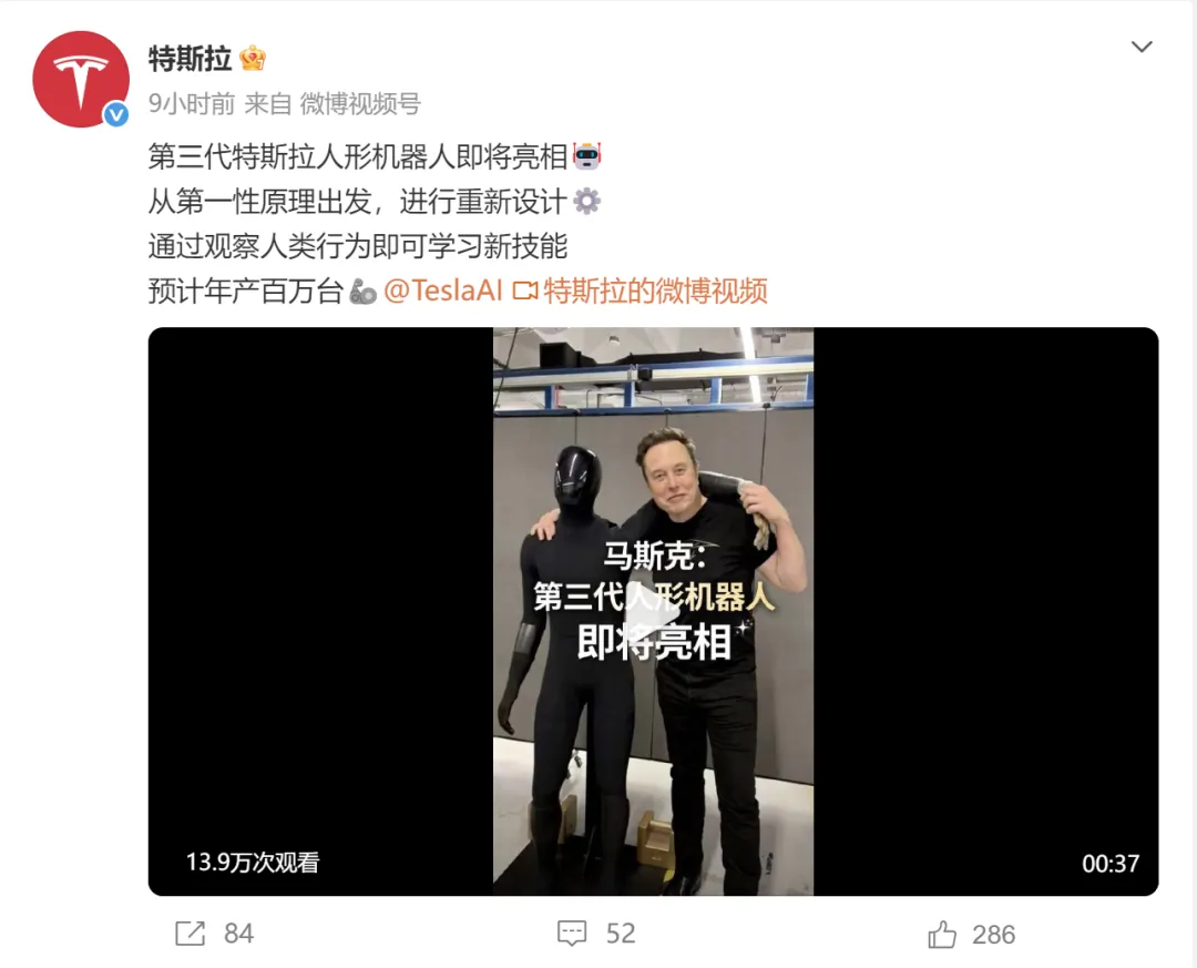 而早在此前2026达沃斯论坛上,马斯克就坦言,特斯拉Optimus机器人将于2026年底进入工厂执行复杂任务(如精密组装、质检),并计划于2027年正式向公众发售,售价预计每台成本将控制在2万美元。马斯克也预测,3-5年内全球机器人数量将超过人类,承担家务、养老等高需求场景,中国将成为人形机器人市场特斯拉的主要竞争对手。