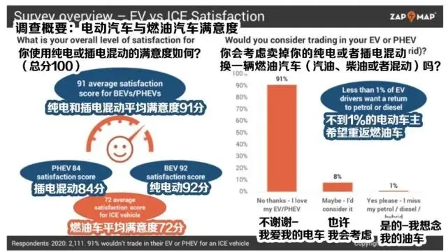 最近,英国Zap-Map公司一项调查显示:一旦你买过电动汽车,这辈子恐怕都不会买燃油汽车了。