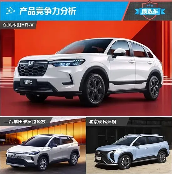 纵观国内合资紧凑型SUV市场,与2026款东风本田HR-V(以下简称:本田HR-V)定位相近且价格相当的车型并不多,综合考虑销量、口碑和品牌形象等多方面因素,此次与本田HR-V进行对比的车型是2026款一汽丰田卡罗拉锐放(以下简称:丰田卡罗拉锐放)和2026款北京现代沐飒(以下简称:现代沐飒)。