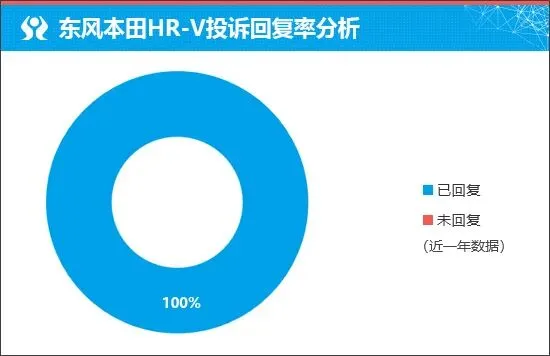 在衡量新车售后服务口碑方面,我们将通过企业对于车主投诉的回复情况进行分析,相对客观地对于新车未来的售后服务口碑有所预判。据车质网数据显示,近一年东风本田HR-V的投诉回复率为100%,可见厂家对于车主的诉求十分重视,对于已出现的问题解决态度非常积极。