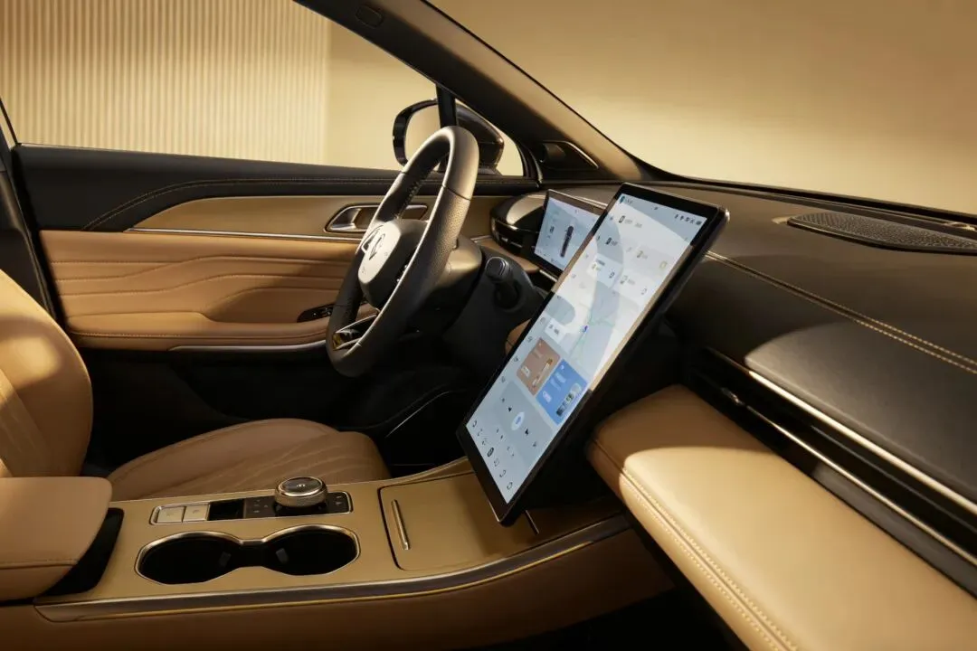 底盘方面,双腔空悬+CDC减振的组合带来“魔毯”级滤震,而“三电机圆规掉头”技术让这台大车转弯半径仅3.6米,城区挪车灵活自如。