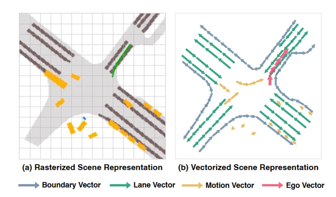 该模型包括特征提取、特征转换、矢量化场景学习、规划模块。