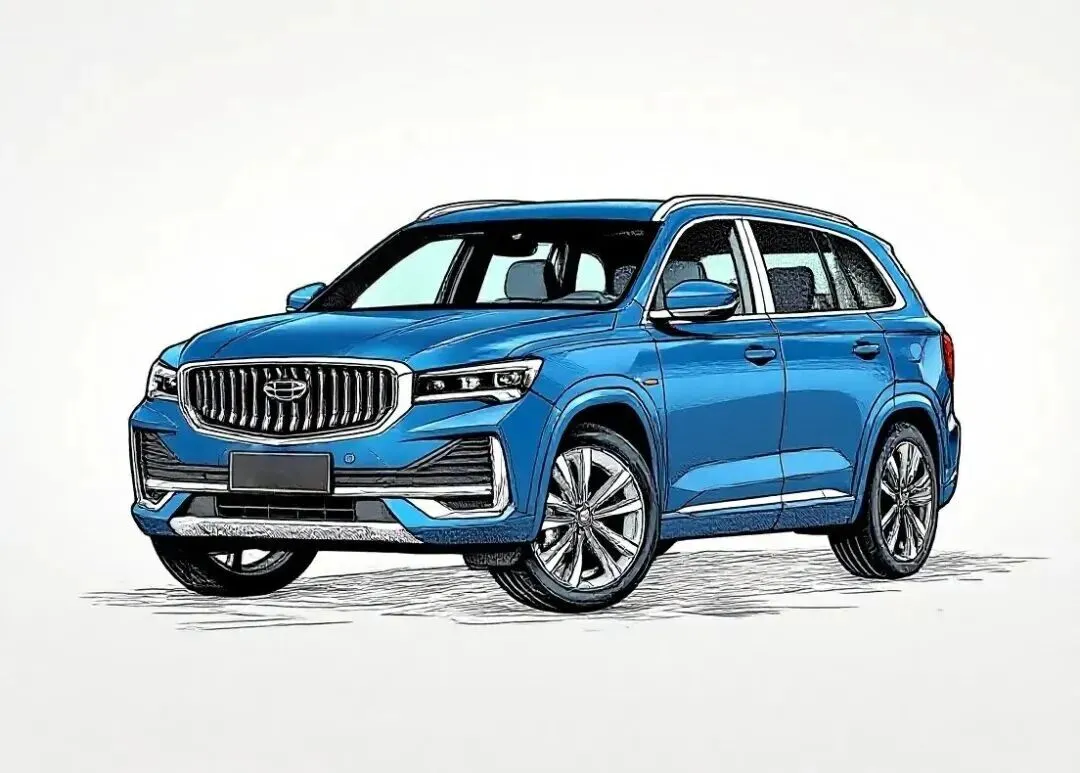 **蓝色大个子SUV(偏中型的那台)**,就明显奔着“排面儿顶满”去的。直瀑式大格栅、镀铬边一抹上去,在小区里一停,远看有点豪华品牌那味儿——在老丈人家楼下等人,走路都能被它衬托得有点摇摇晃晃。